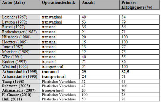 Zusammenfassende Anmerkungen zu einer erfolgreichen Fisteloperation:
